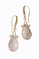 Rutilated quartz briolette earrings with 14k yellow gold braided french hooks