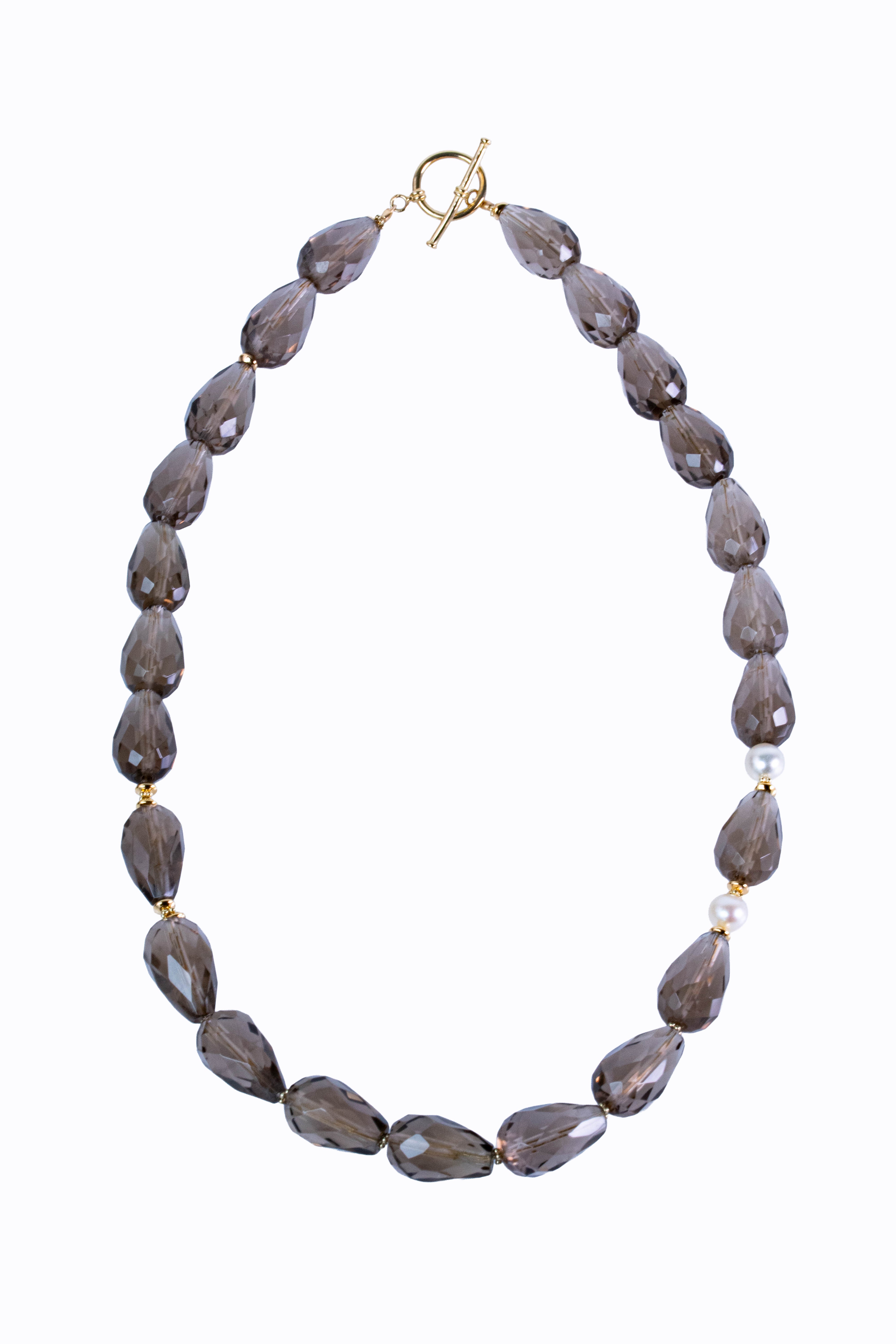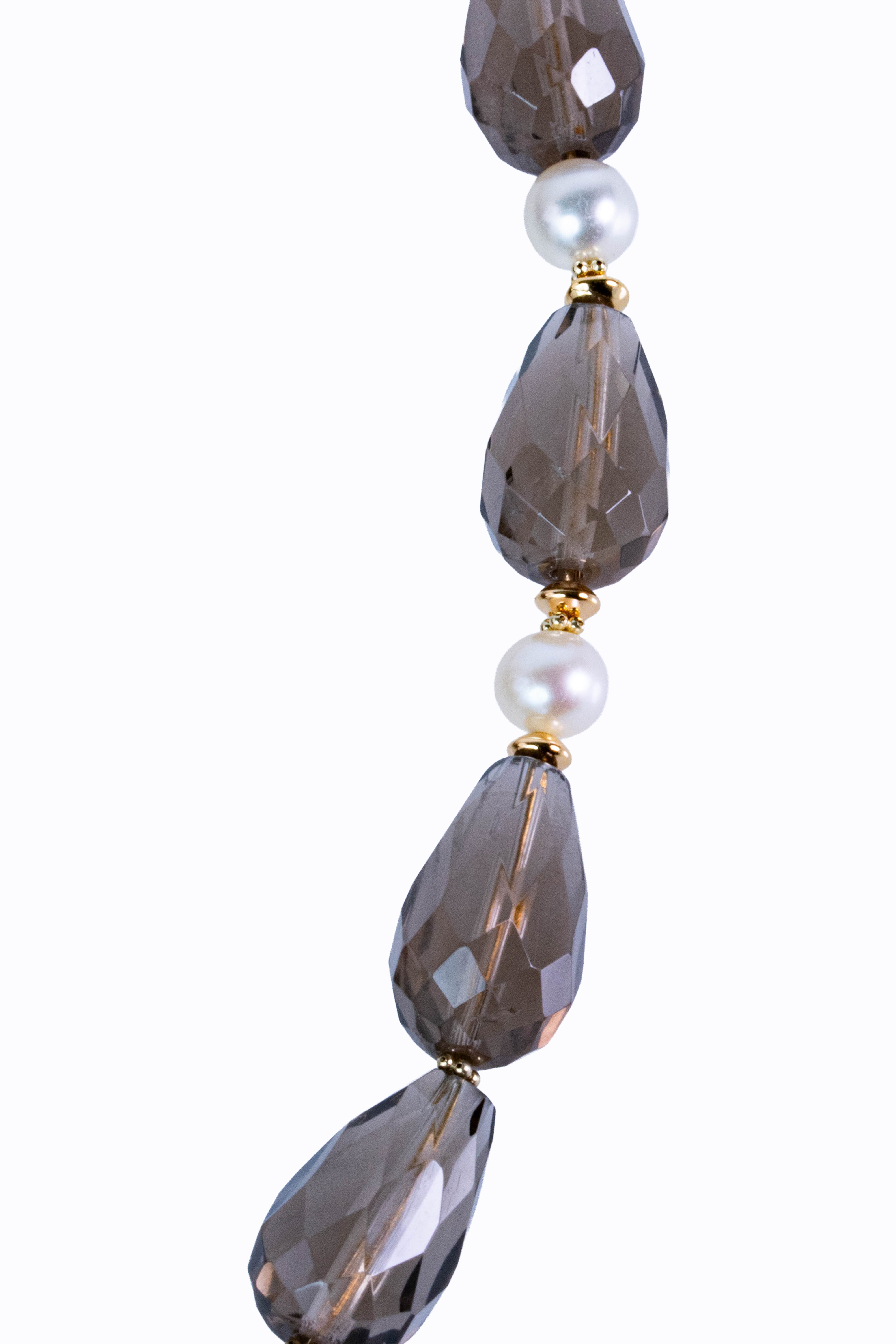 Smokey quartz necklace with cultured pearls & 14k yellow gold