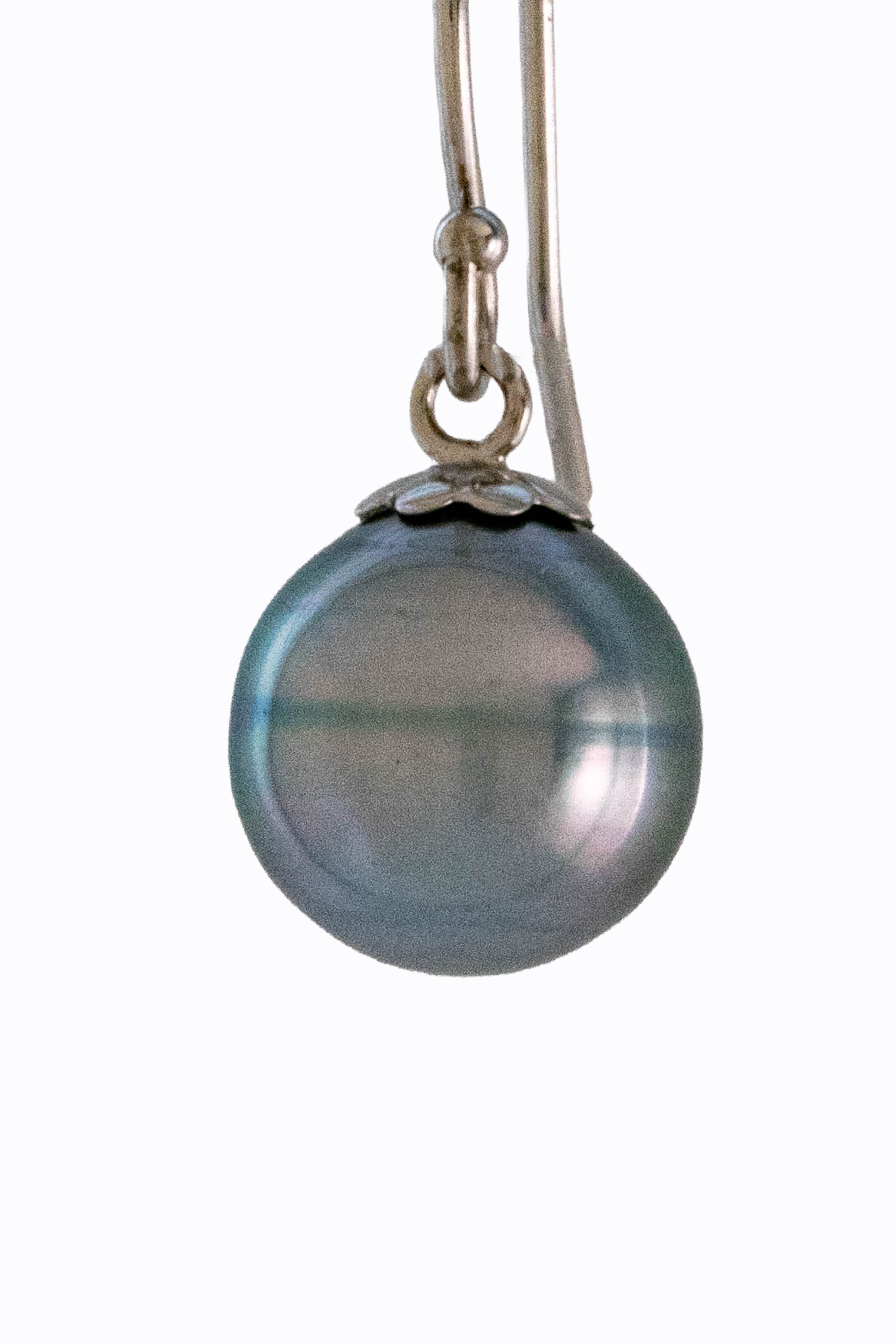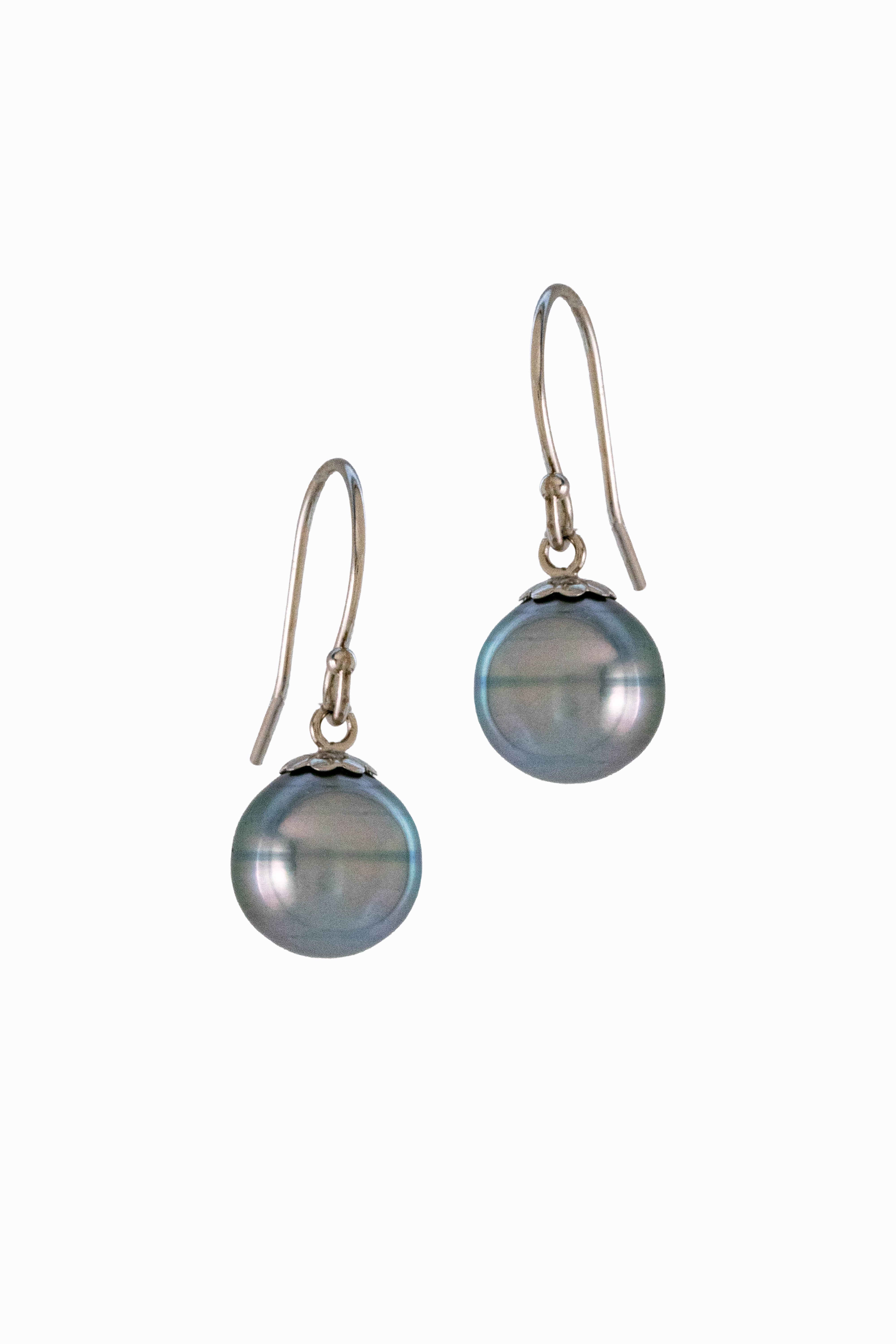 Light smokey grey Tahitian pearl earrings with 14k white gold french hooks