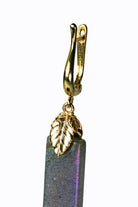 Labradorite & 14k yellow gold leverback earrings with golden leaf accents