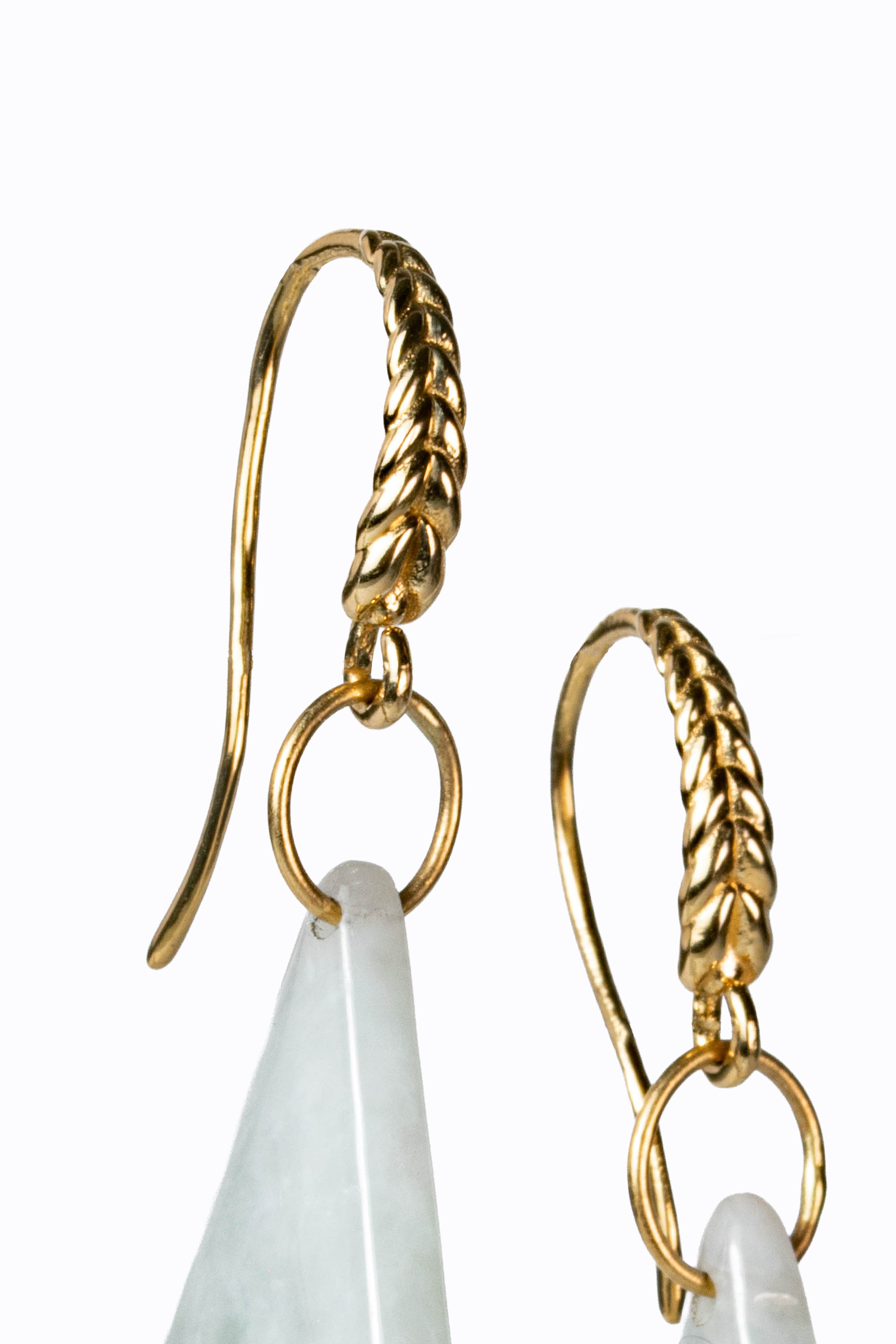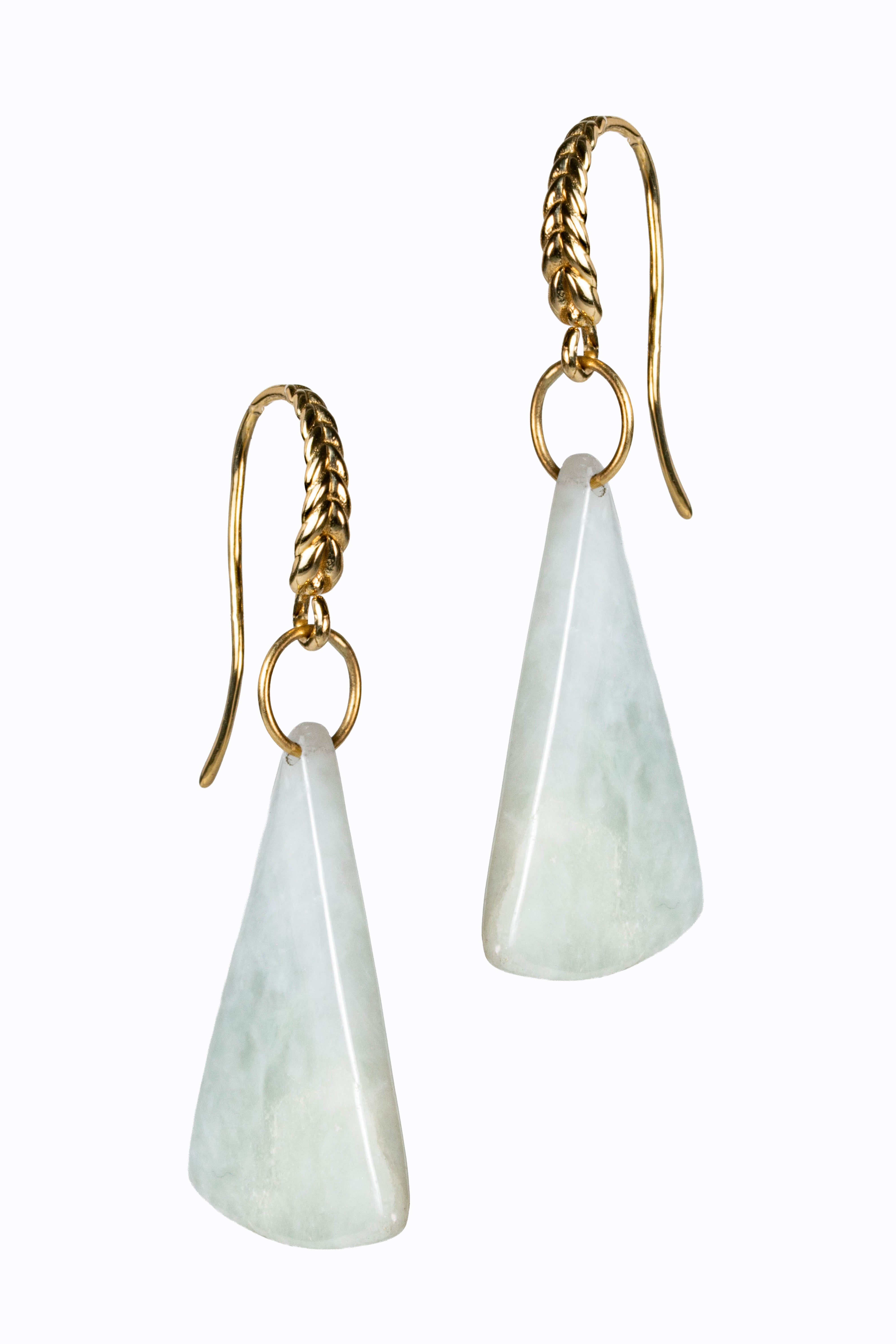 Burmese white jade earrings with 14k braided French hooks