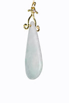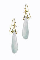 Burmese Jade drop earrings with 18k yellow gold French hooks and bezel-set diamonds.
