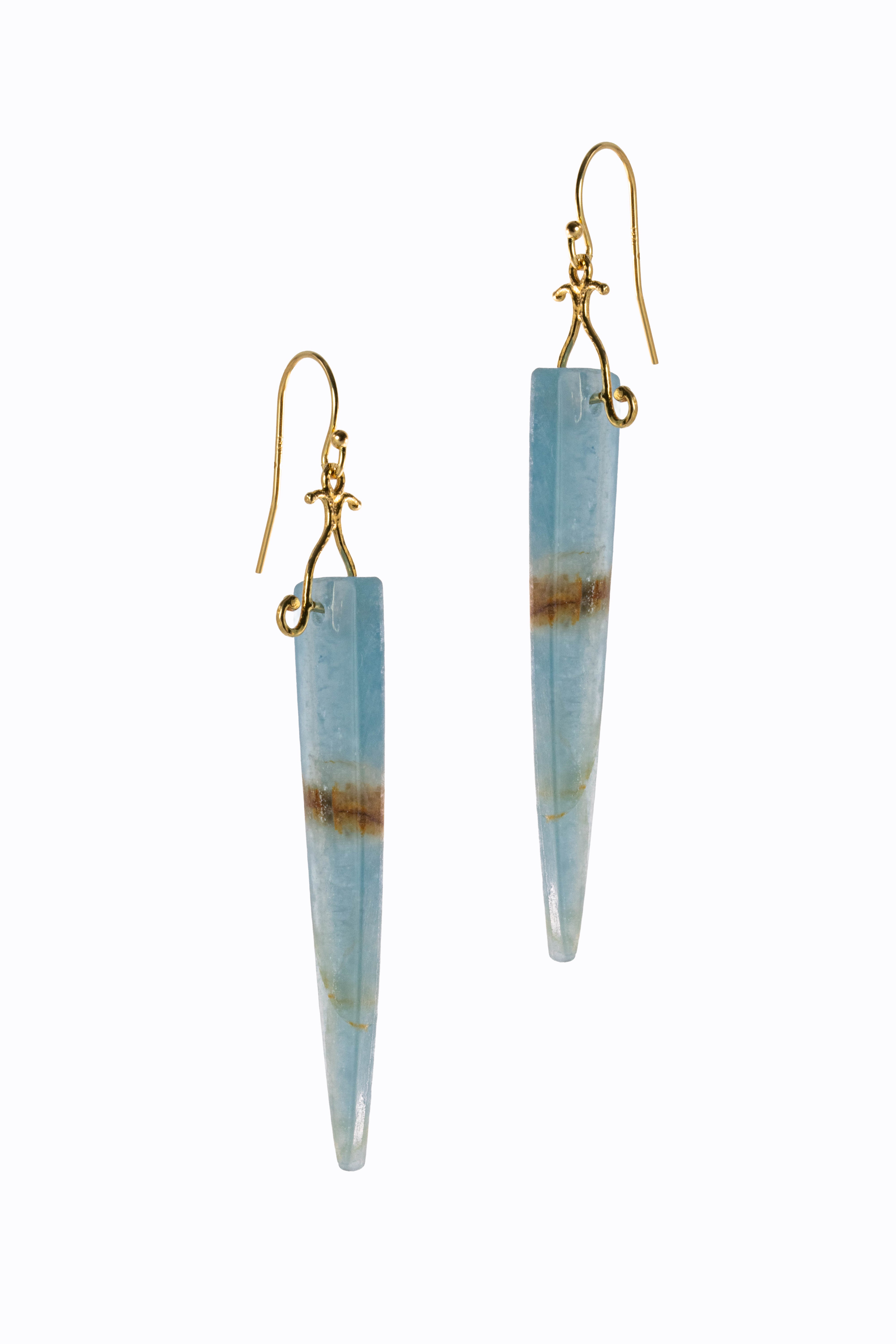Argentinian Lemurian long drops with 18k yellow gold & simple French hooks.