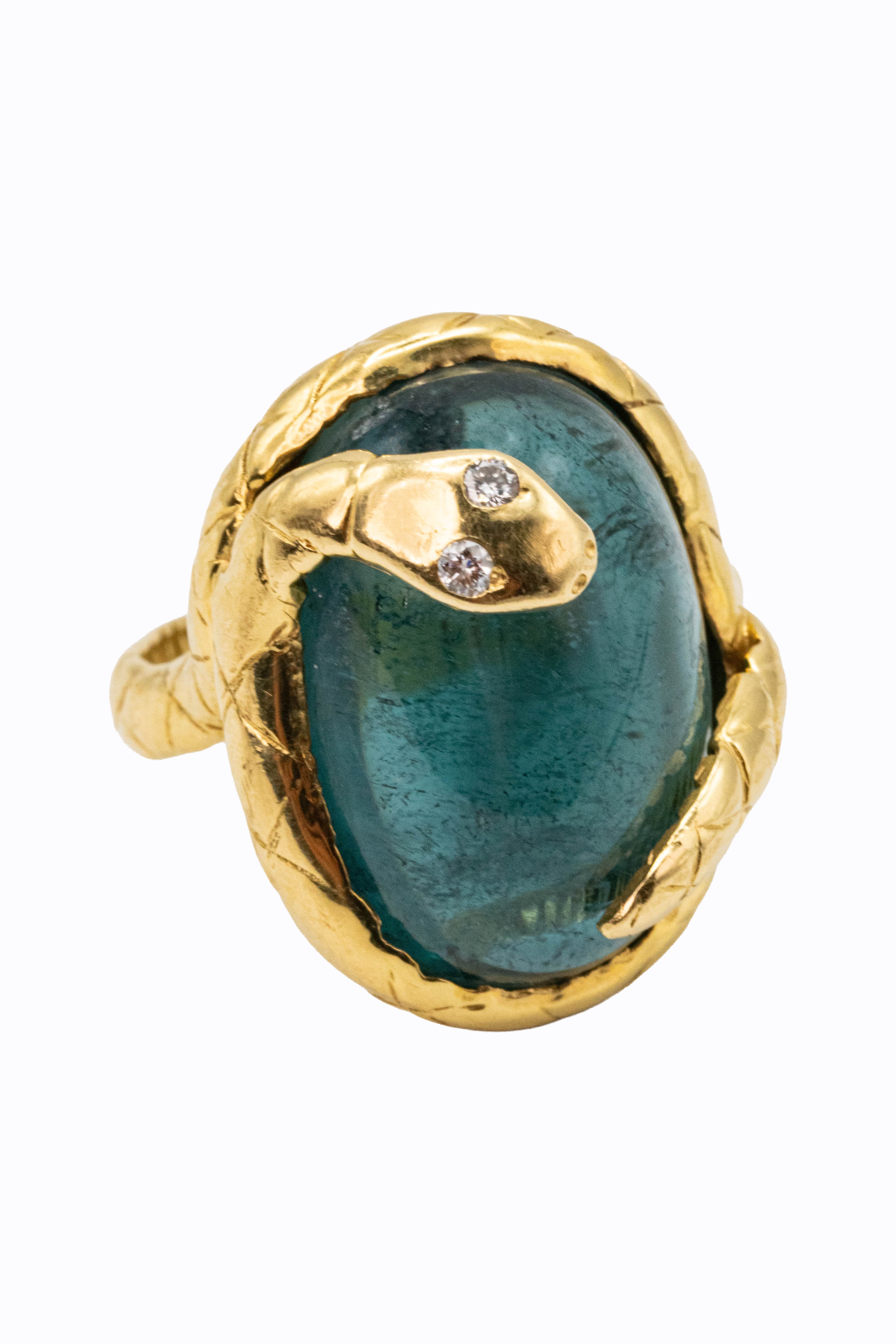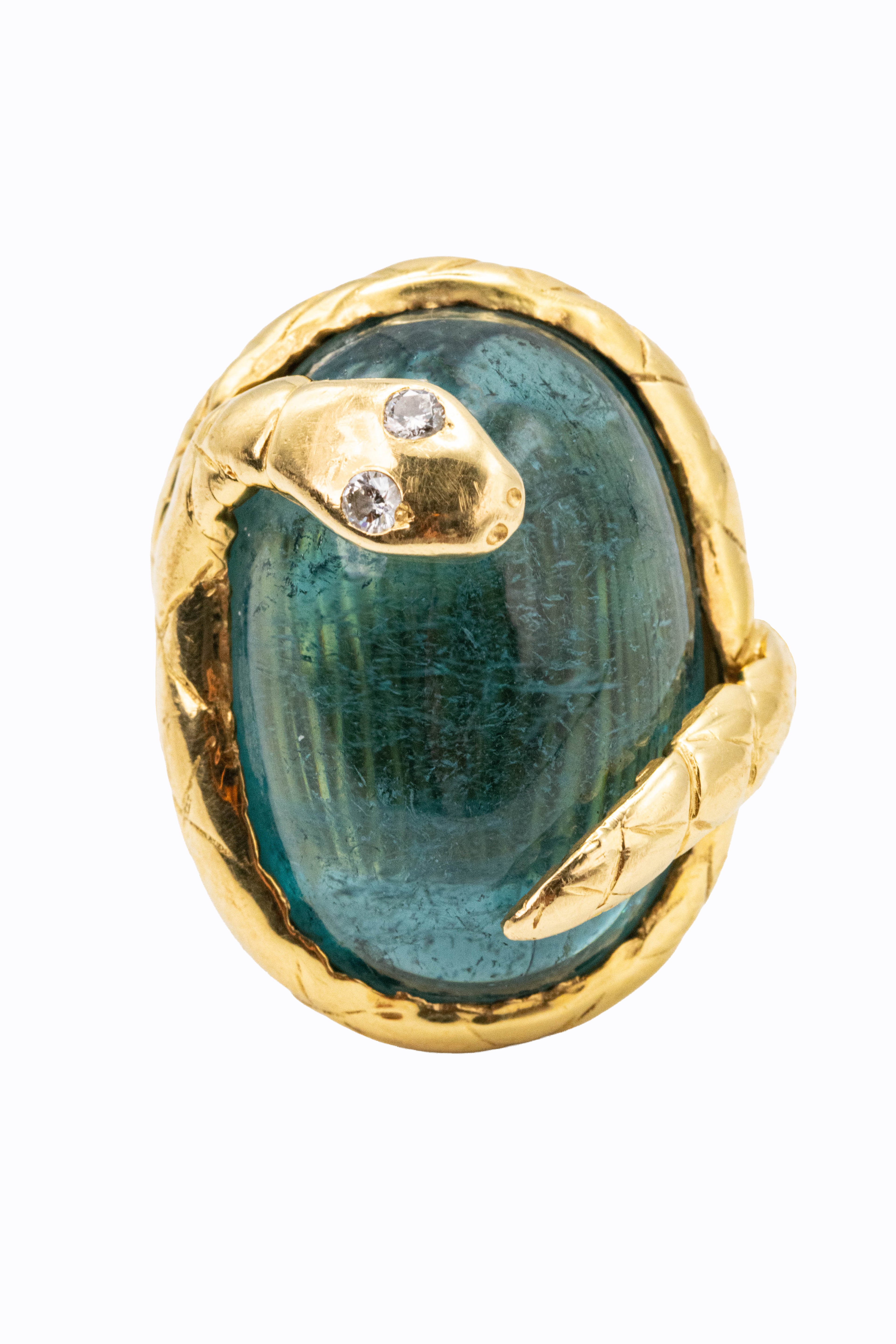 The Snakie tourmaline ring. 18k yellow gold with diamond eyes. Made to order with choice of tourmaline color and diamond color.