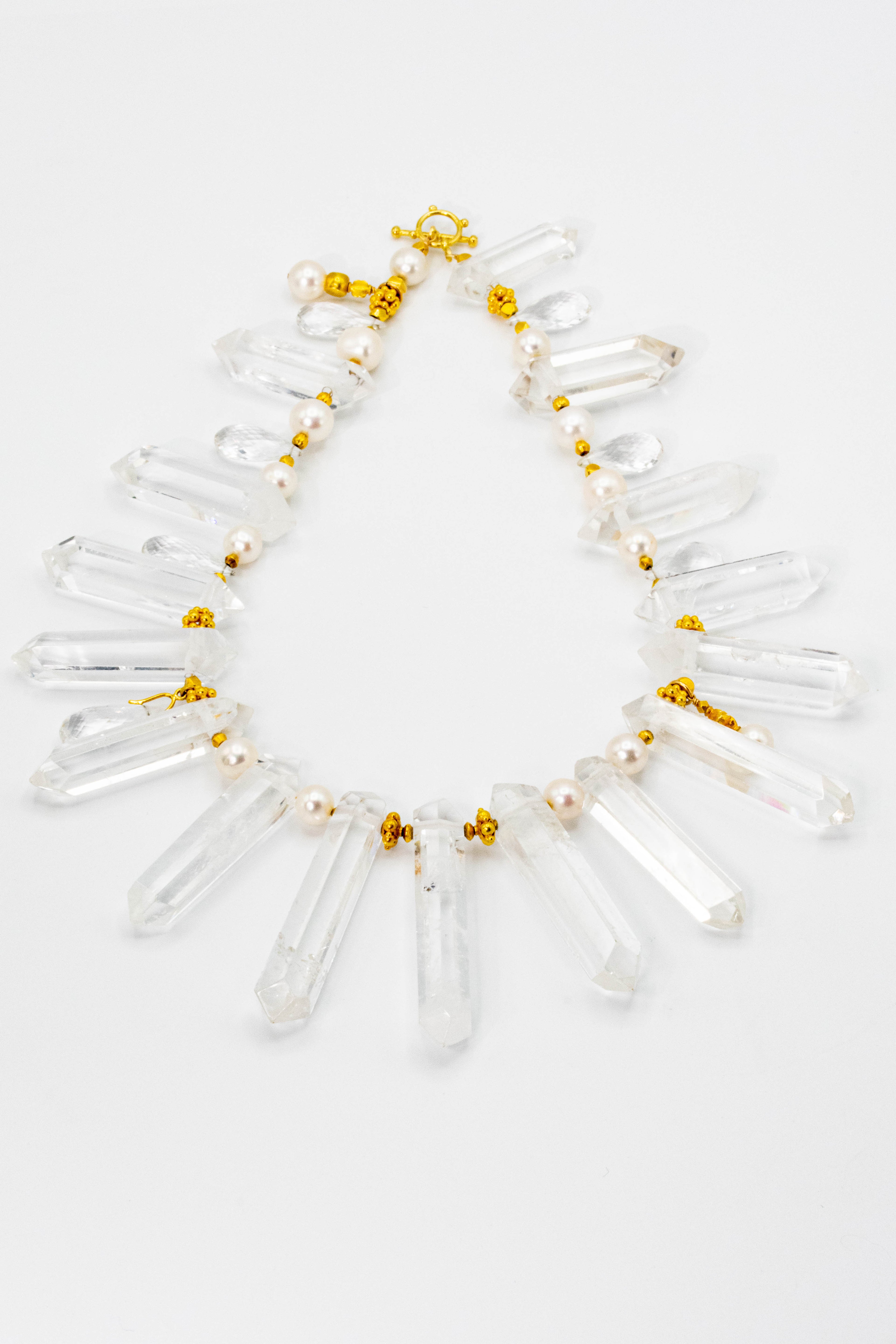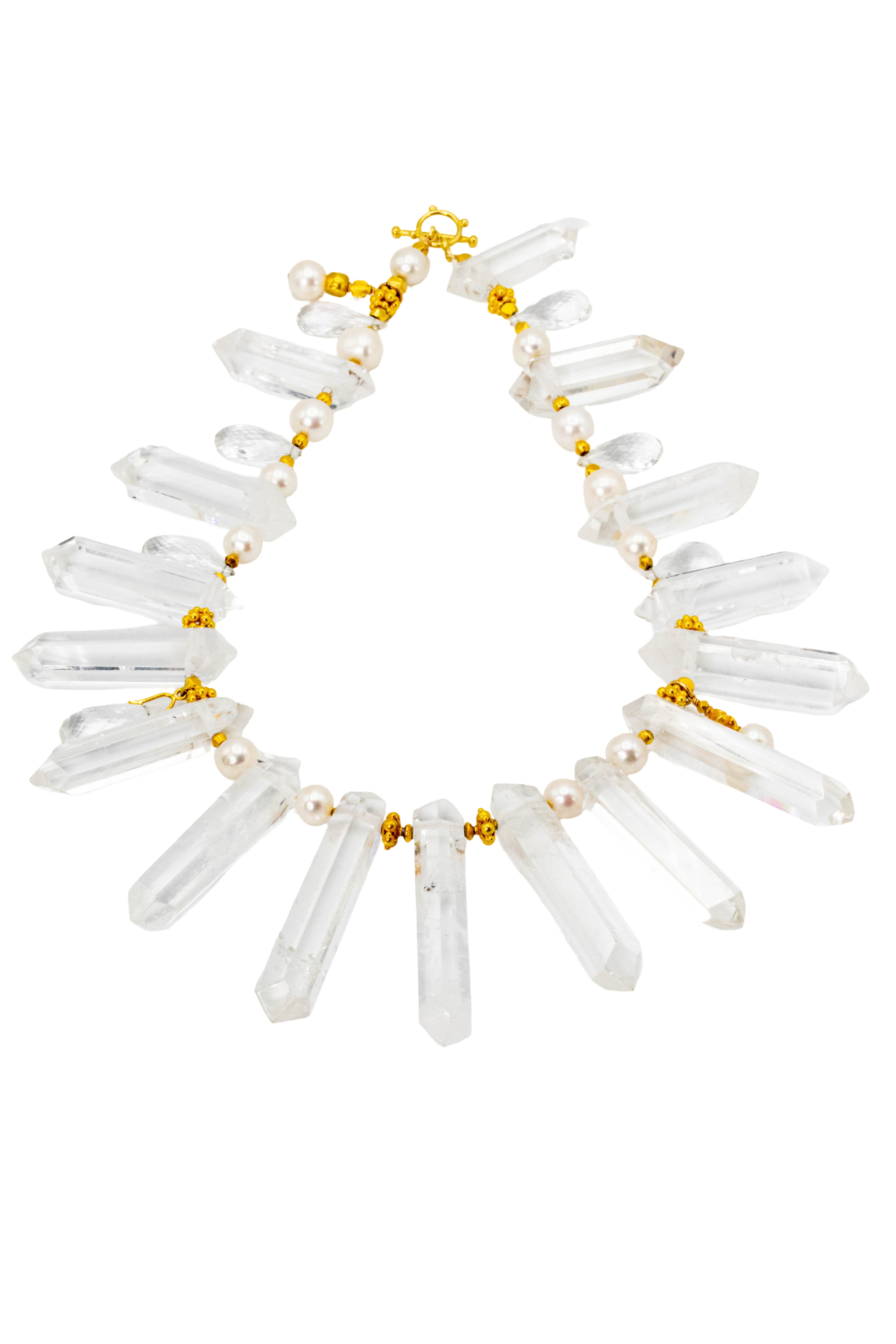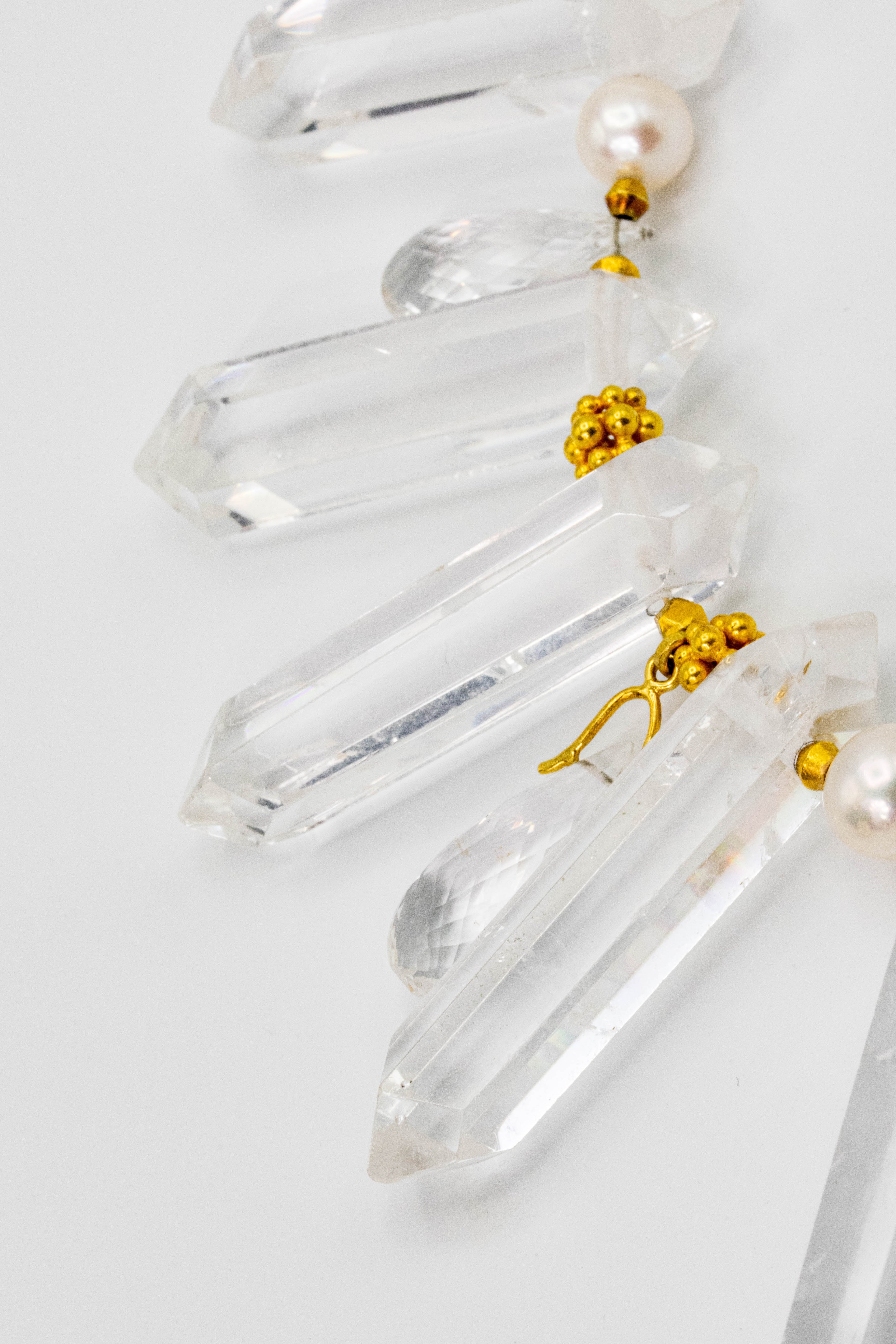 Natural crystal necklace with 18k yellow gold and South Sea pearls.