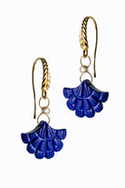 Carved fan lapis earrings with 14k braided French hooks & diamond accents