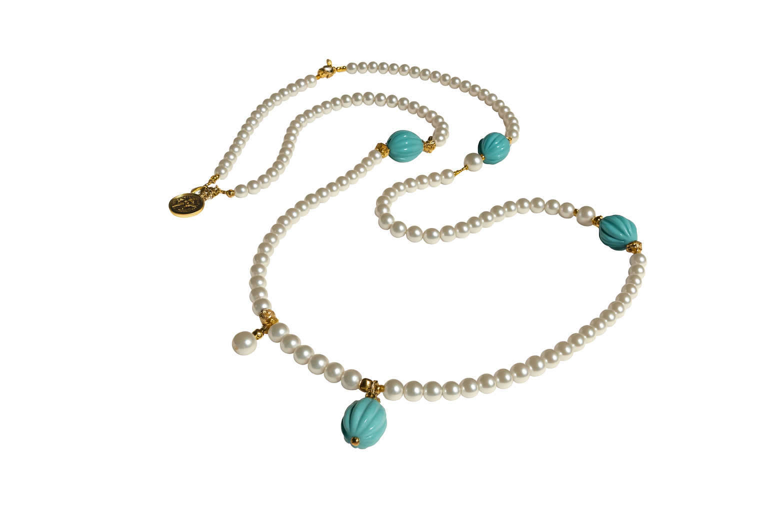 Alicia's pearl, turquoise 18k long strand necklace