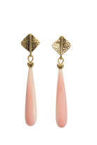 Angelskin coral smooth briolette drop earrings with 18k