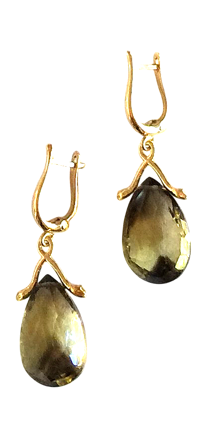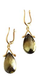 Bi-color faceted lemon/smokey quartz briolette leverback earrings with 18k