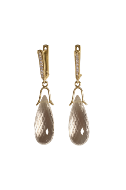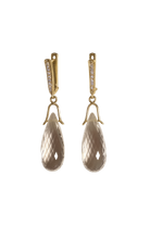 Faceted briolette natural quartz leverback earrings with pave diamonds