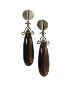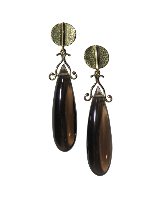 Smooth briolette earrings of smokey quartz with 18k hammered discs