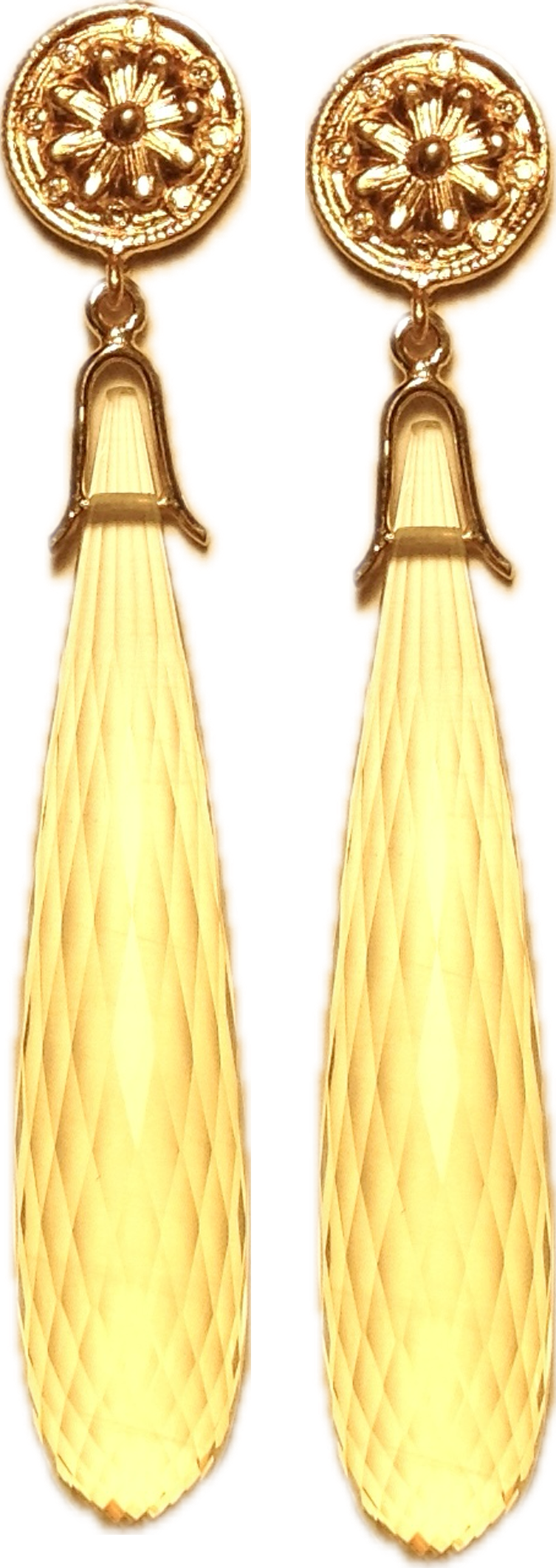 Faceted lemon quartz briolettes earrings with 18k gold. Long, lovely & luminous.