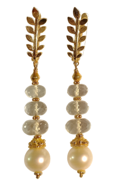 Pearl & green amethyst leaf leverback earrings with 18k