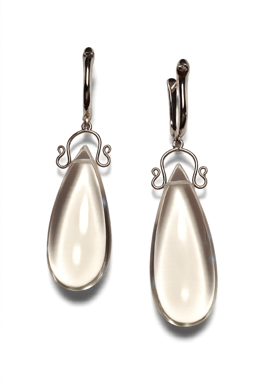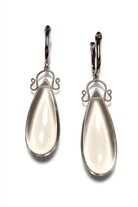 Clear quartz smooth briolette Snakie leverback earrings in 18k white gold.