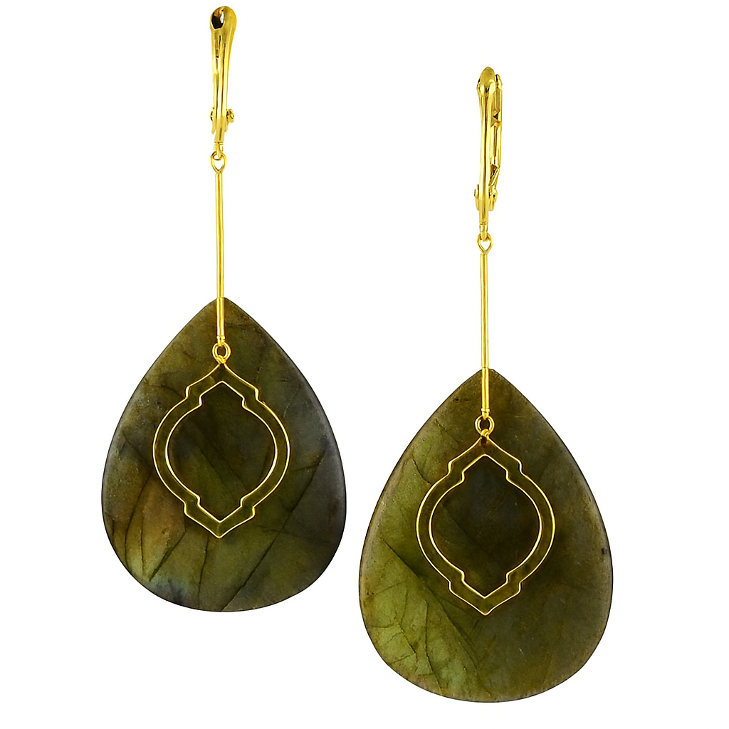 Snakie leverbacks w arabesque drops & labradorite smooth briolettes