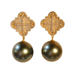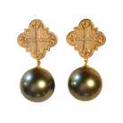 South Sea pearls with diamond-accented 18k quatrefoil earrings
