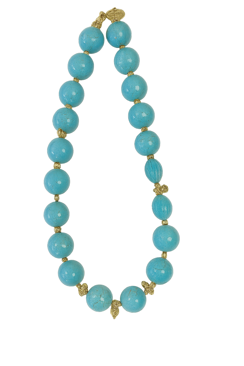 Turquoise round & carved w 18k necklace
